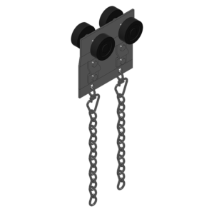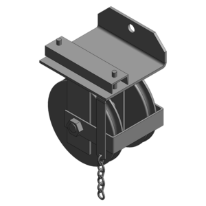 TrackTwo 4” diameter sheaves and bracket used for diverting an operating line to a floor pulley.
