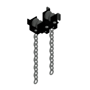 Track6″ diameter sheave and bracket for returning the operating line to either a master carrier or the operator end of the track.