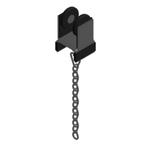 Track8″ diameter sheave with shielded ball bearings in heavy duty steel housing.
